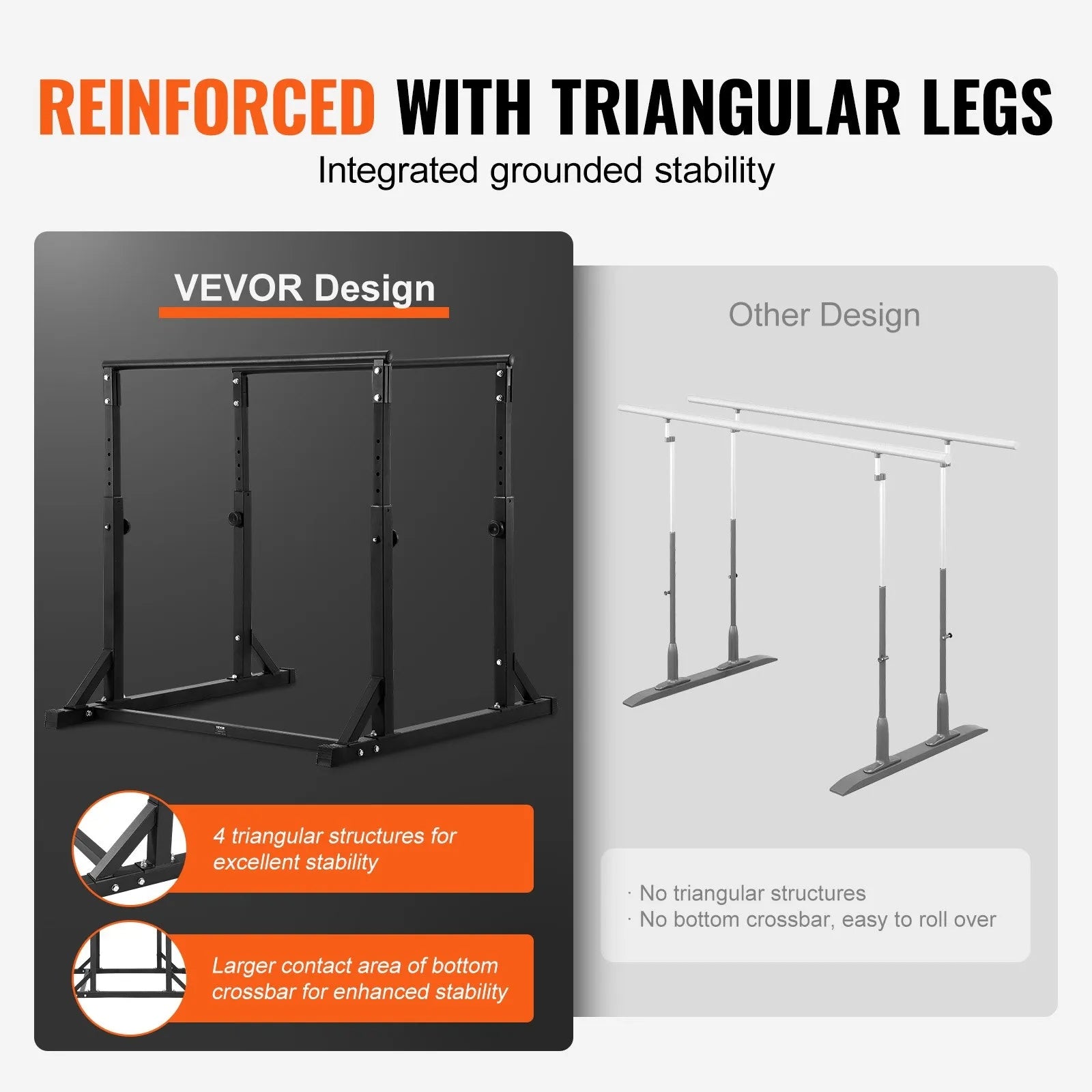 - Enhanced Stability: The dip bar station features a reinforced base with a connecting crossbar design, increasing ground contact for added stability. With four triangular reinforcement structures on the legs, you can work out with confidence. No wobbling, no tipping – just a sturdy and safe platform for your workouts.