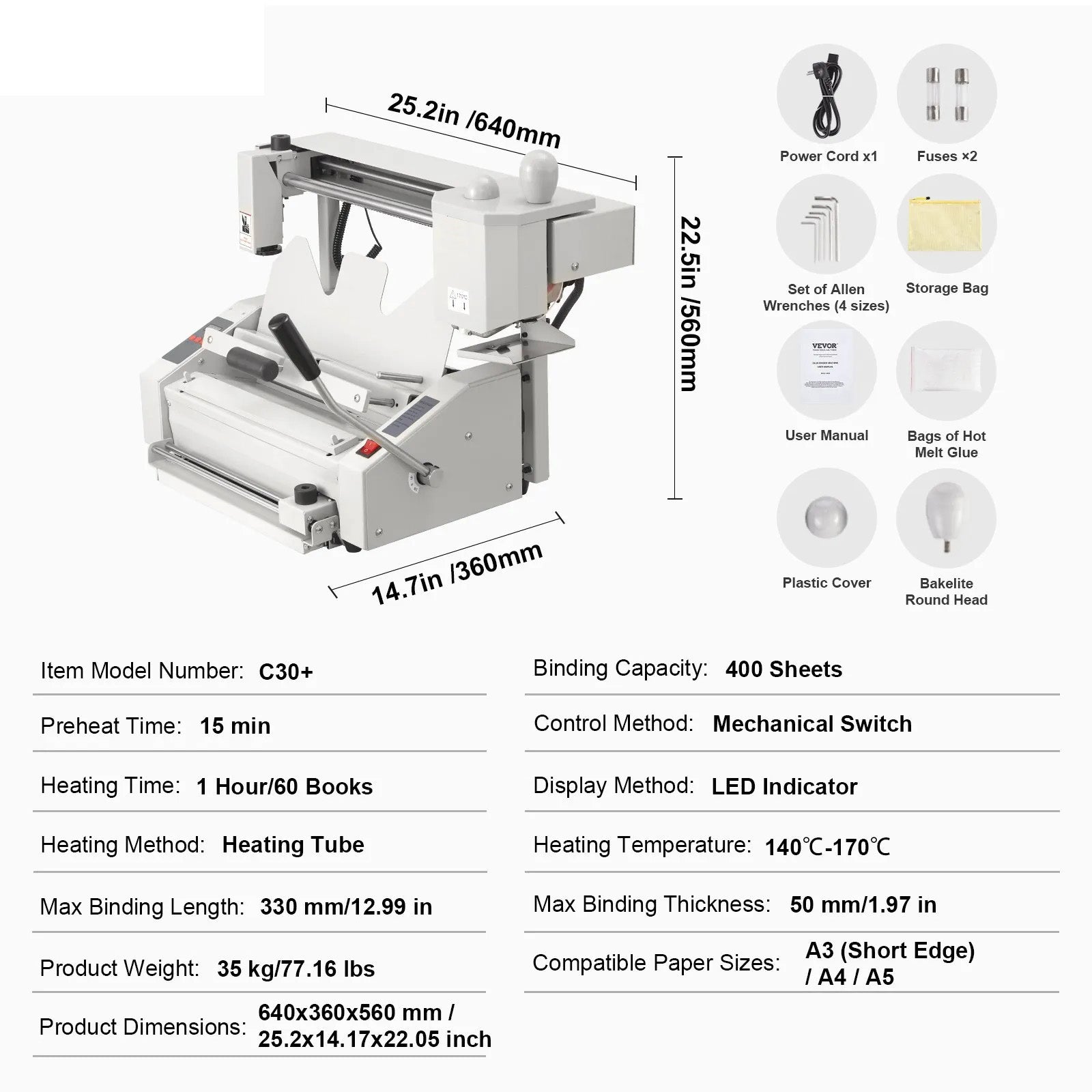 - Large Binding Capacity: Compatible with A3 (short edge), A4, and A5 paper, this thermal book binder can bind up to 400 sheets with a thickness of up to 50mm at once. Make your document organization more efficient and convenient!