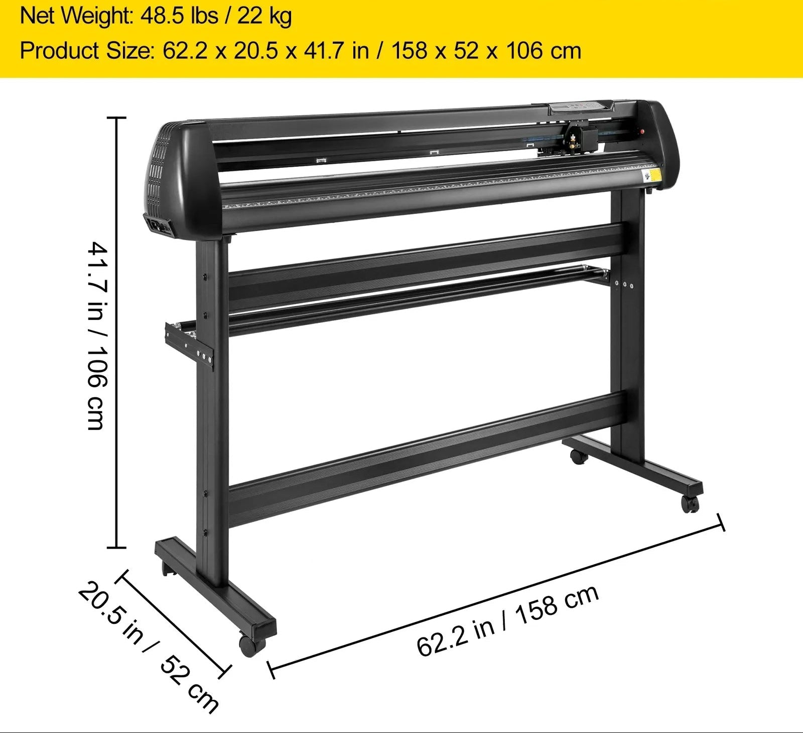 - Premium Quality: This excellent vinyl cutter machine features a thickened, high-quality aluminum material body with powerful stepper motors. Max Paper Feed: 53.1 in / 1350 mm ; Max Cutting Width: 49.6 in / 1260 mm.